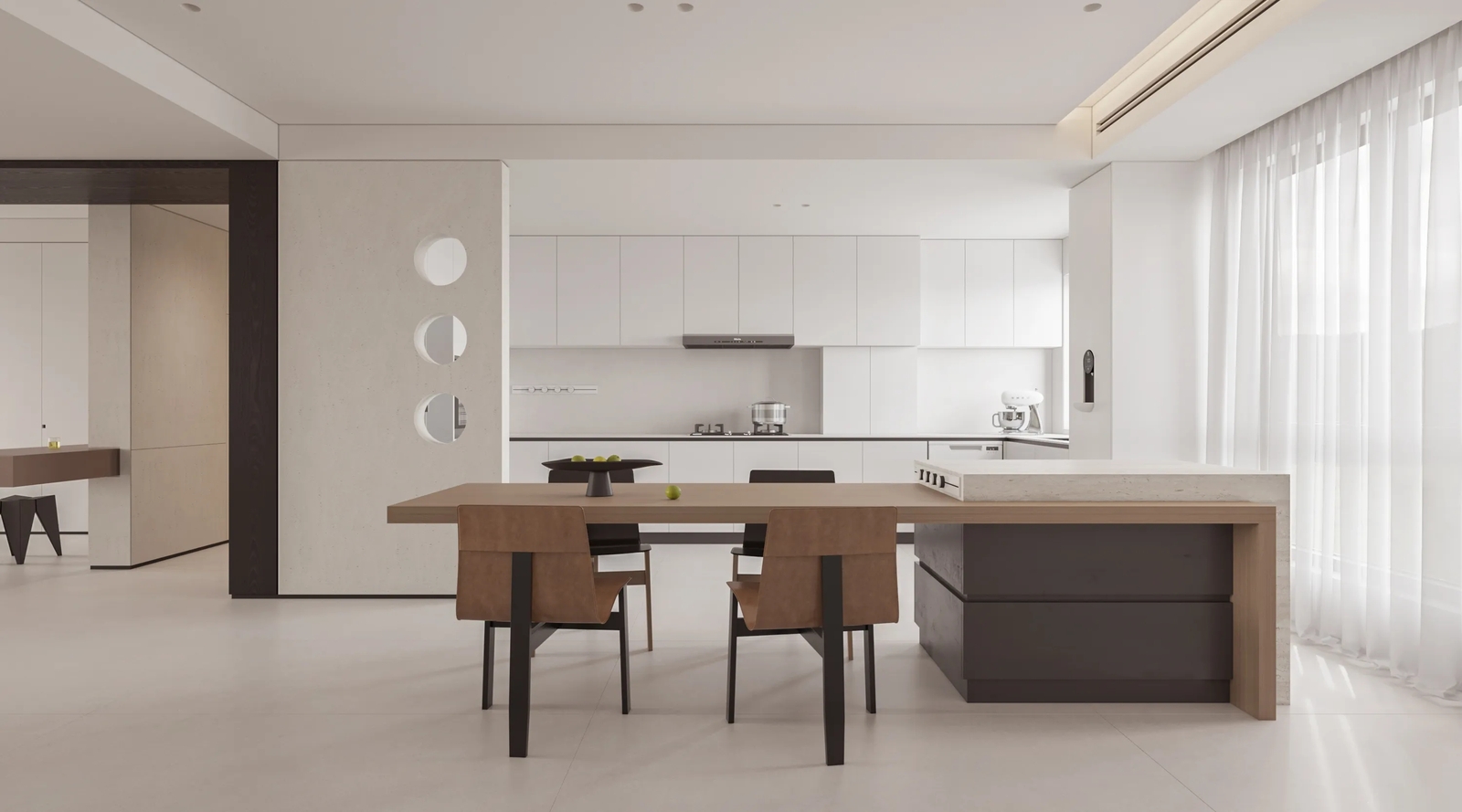 1.极简≠简陋:核心是细节精准,无主灯点位、柜体分缝、材质收口,都要提前规划;
