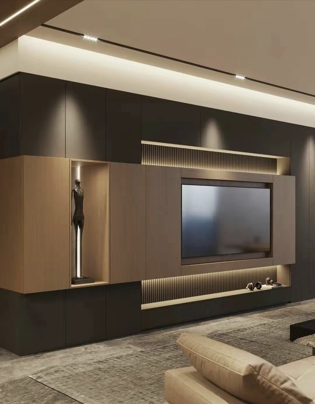 与空间基调匹配背景墙的造型复杂度需和整体空间的简洁或繁复程度一致,避免轻空间配重背景或重空间配轻背景。